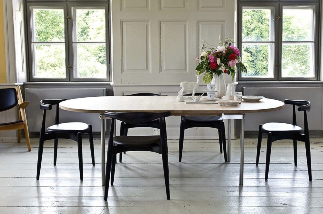 Carl Hansen dining solutions are designed for contemporary living, offering elegance, comfort and flexibility. Tables are shaped to suit very different dining spaces: round, oval, softened, square or rectangular. You can seat from two to fourteen guests and many tables can adapt to differing requirements using dropped ends or extending leaves. Table tops are available in solid timber or laminate, with frames in steel or wood. These tables combine beautifully with a range of nine dining chair styles offering formality or playfulness, with wood,steel,leather, paper cord and colour options to suit your needs.